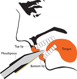 - Form a seal around the mouthpiece with your lips by bringing the corners in.